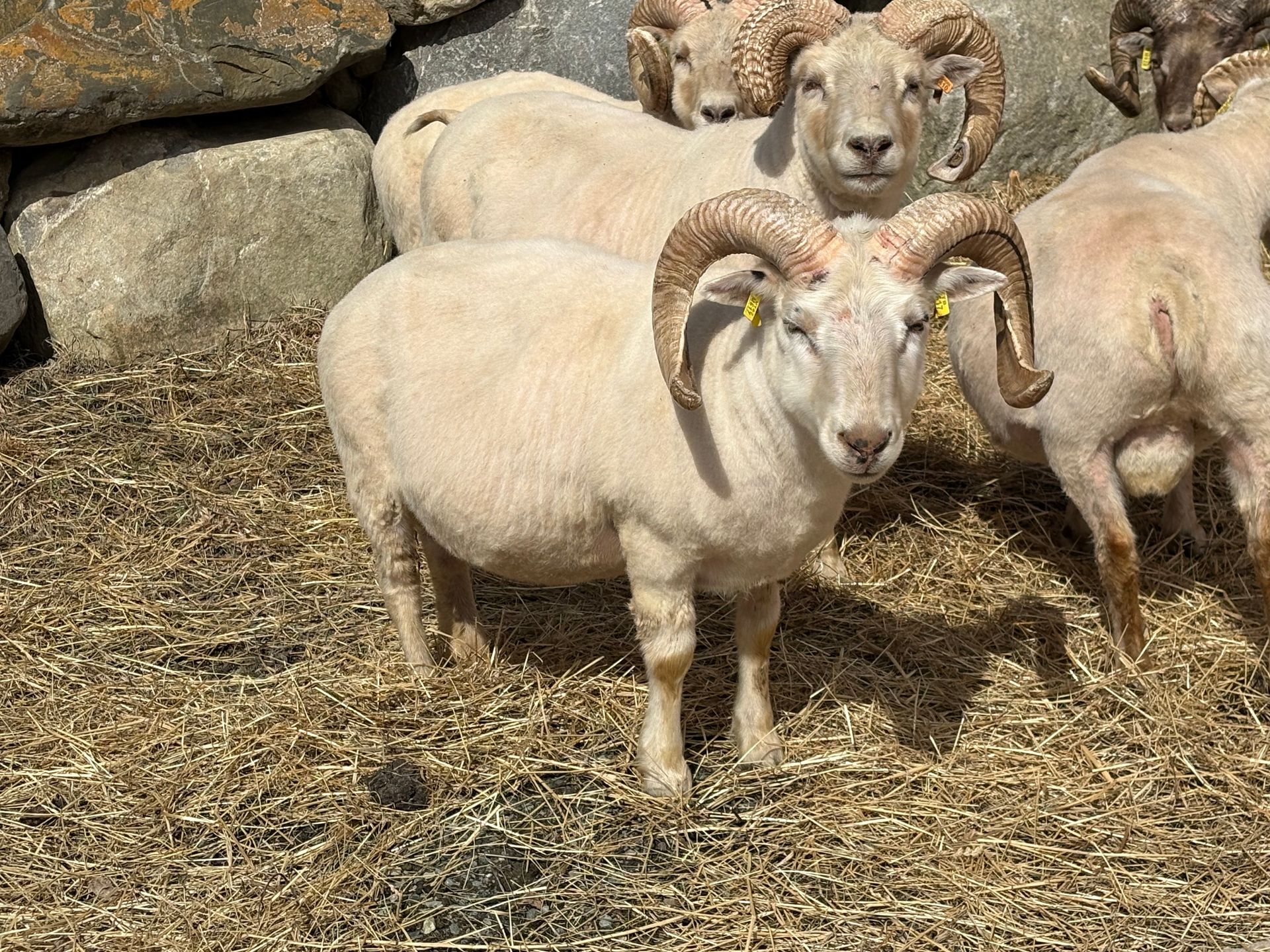TRIPLET. Son of AI sire Askur. Heterozygous white with second pattern being either grey or solid. 91% AI genetics with main AI lines form Askur, Vali, Drifandi, Flotti, Bessi. Gorgeous ram with wonderful horns. Great overall muscling, nice body length. Extremely dashing ram with excellent temperament. Out of a dam line that is very milky and with good fleece.